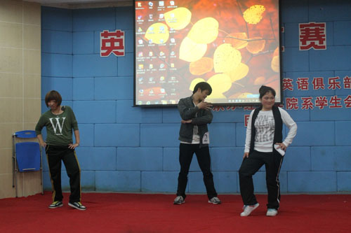 为了提高广大师生学习英语的兴趣,在校园里兴起爱好英语、学习的风尚,以比赛带动形成学院浓厚的学风建设。4月5日晚,由院团委主办,学生社团联合会、英语俱乐部承办,经贸学院学生会协办举行了“第十届英语口语大赛”。担任此次英语口语大赛的评委是我院有着丰富英语教学经验的金秀金老师、徐国盛、何月姝老师、朱杨琼老师、谢建国老师、乔宝玲老师。