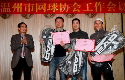 3月11日,温州市网球协会召开2012年工作会议。会议总结了2011年的工作,并对2012年的工作进行了安排部署,同时表彰了2011年度先进工作者。网球协会主席何向荣教授在会上发言,肯定了网协的工作成绩,并鼓励协会继续做好推广网球运动,在普及基层、加强培训、注重青少年培养和积极组织赛事等方面多做工作。我院潘志武老师代表工贸学院网球俱乐部获得2011年度“先进工作者”称号。