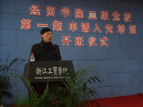 2012年3月9日中午,经贸学院二级党校第一期学生申请入党人员培训班开班仪式在阶梯教室举行。经贸学院大一、大二年级近400名递交入党申请书,但未确定入党积极分子的学生将接受党组织为期二周的集中教育培训,通过培训,进一步加深他们对党的认识和了解,进一步树立正确的入党动机。经贸学院党总支书记项光春在开班仪式上就举行培训班的意义做了讲话,并对培训班的组织和参加培训的学员提出五点希望和要求:一是思想上高度重视,珍惜本次培训班的学习机会;二是加强管理,确保本期培训工作顺利完成;三是培训学习要与推进学风建设相结合,确保学习成效;四是严于律己,充分发挥模范带头作用;五是奋发学习,提高综合素质,成为社会有用之才。