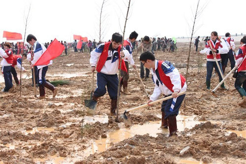在连绵多日的阴雨后,终于迎来了难得的春光。3月11日,由团市委牵头主办的“祛疤栽花·绿满温州·青年争先”共青团绿化大行动在全市各地共同启动。位于瓯江口新区的启动仪式主会场迎来了1500多名团员青年和热心市民挥锹植树的忙碌身影。我院90名“红马甲”志愿者以饱满的精神面貌,以整齐有序、行动有效的行为作风积极参与此次活动。