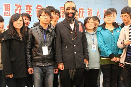 3月21日下午,毛孩“金刚”——于震寰来在我院举行了“理想改变命运,感恩成就人生”的励志演讲。毛孩“金刚”作为“中国第一毛孩”,他的出生曾震惊了世界,被吉尼斯纪录评为“世界毛发覆盖最多的人”。这身毛除了给于先生带来100%的回头率之外,也带来了无尽的烦恼,甚至是磨难。他曾经用手拔自己的毛,想把一身毛都拔掉。不仅如此,因为毛囊堵塞,“他的鼻子手术做了三次,他曾带着极为丑陋、快要烂掉的鼻子到处演出,还有头部的六次手术,两次牙龈增生手术,耳道听力恢复手术……”有一段时间,于先生因为自卑甚至有一股子恨,恨父母、恨命运,恨社会……也曾遭受歧视,几近自杀边缘;但凭着一股不服输的韧性,毛孩“金刚”不断地锻炼承受能力,变得坚强,勇敢。于震寰先生渐渐习惯了周围的目光,并开始四处拜师学习音乐。