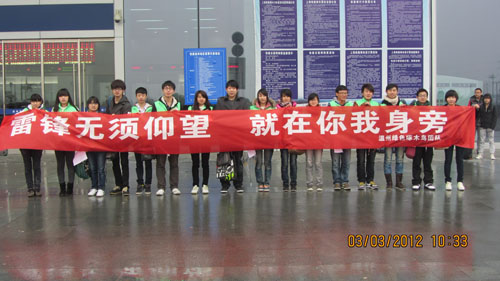 2012年3月3日,为响应“雷锋月”号召,我汽机分院温州绿色啄木鸟团队,在温州动车站开展“雷锋无需仰望 就在你我身旁”动车站便民志愿服务。此次活动也是响应北京啄木鸟的号召,从力所能及的小事做起,进行社会服务,让青年学生学习和体验志愿者精神。同时,让人民群众感受到雷锋精神无处不在。
