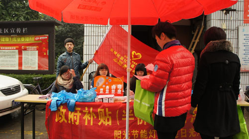 活动得到了各个社区的大力支持,各个社区的居委会给予我们很大的帮助。活动过程中,队员们通过向居民分发节能灯宣传手册,介绍节能灯使用的年限、功率、效益等,鼓励广大群众把“低碳”带回家。针对老年居民,考虑到他们行动不便,服务队同学特意上门为他们安装节能灯。