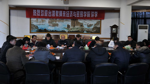 2月10日下午在1号教学楼六楼会议室,经贸学院新进的3位台湾导师与结对青年教师开展座谈会。会议由分院院长汪焰主持,参会的人员有经贸学院党总支书记项光春、分院院长助理丁长峰、各教研室主任以及分院结对的青年教师。