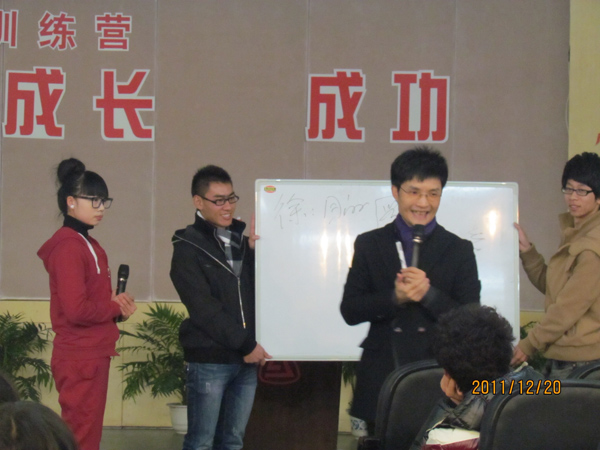 在培训现场,欧阳杰老师通过一个小游戏开场,激起了现场同学们的兴致。随后,他提出规划,梦想,目标的重要性,同时又通过对人的深层解剖,阐述学习对成功的重要性。他鼓励学生走出学校,学习对自己有利的知识,时刻明白“我要成为什么样的人”,并为之不断奋斗。同时在做事某方面,他提出只有身心合一才能把事情做好,经常与心交流,不断问自己三个问题“我到底要什么?”“我正在做什么?”“我要的和我做的有什么关系?”通过这些问题的提出,引发同学们的深刻思考,将此次活动推向高潮。