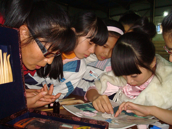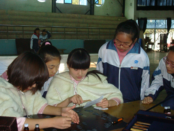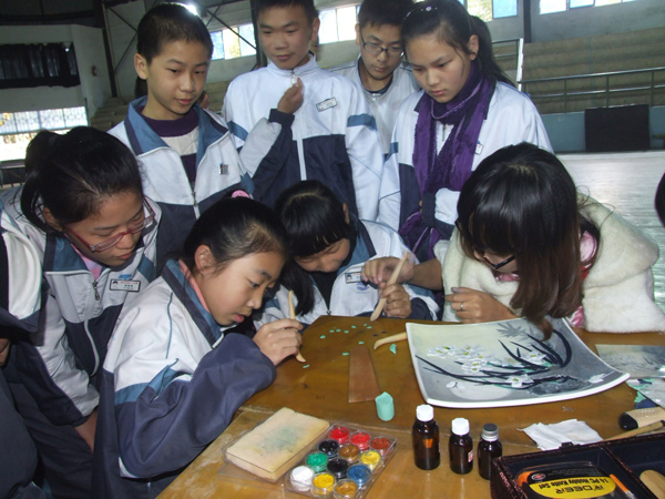 我院传统工艺美术研究所瓯塑艺术工作室,自2005年成立以来,一直致力于对这一传统工艺进行保护、传承、创新。2009年被评为“浙江省非物质文化遗产教学传承基地”。在本次活动中,我院传统工艺美术研究所瓯塑工作室高级工艺美术师郑央凡老师携10位学生,18件展品,以及4副瓯塑制作工具来到现场。温二十中的学生零距离得接触了瓯塑,并亲自动手体验到瓯塑的制作流程。