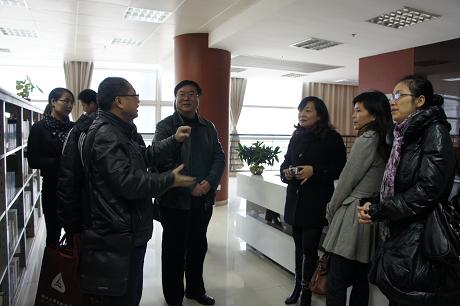 在台州科技职业学院,崔馆长热情地接待了我们,并带着我们参观了图书馆的馆舍之后,还详细地介绍了该馆的馆藏资源、员工配备、工作流程及服务特点等等,使我们一行人从中受到了不少的启发,开拓了工作思路。
