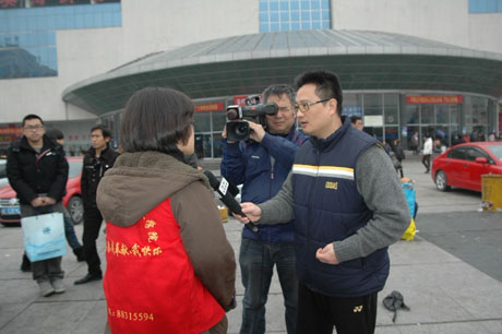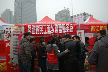 数着日子,到年底了;数着日子,可以回家看看父母、儿女了;数着日子,可以闻闻家乡的气息了。回家过年了,再难都要回家,每年春运都是这样:喜悦与担忧同时萦绕着在新温州人。2012年的春节也不例外,紧张的购票压力让许多异乡人忧虑。我院“红马甲”志愿者队的同学们在火车站广场设立的“帮助农民工返乡购票服务点”给焦急等候买票的归乡人带来了阵阵的暖意。