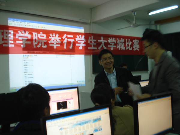 2011年11月25日,管理学院在3614机房举行了首届学生大学城使用比赛。比赛共设一等奖1名,二等奖2名,三等奖3名,获得前三名的同学将代表管理学院参加学校的大学城竞赛。管理学院院长潘毅、院长助理洪长存、实训中心主任季建武等担任了比赛评委。经过2个多小时的激列角逐,会计1108班长张祥楠同学获得了管理学院比赛的冠军,余婷婷和徐丽芳同学分获第二、第三名。胡玉琳、罗霞、潘君荣等同学获得了四至六名。