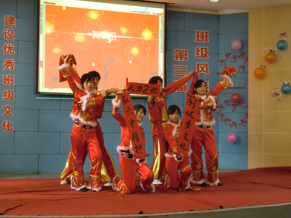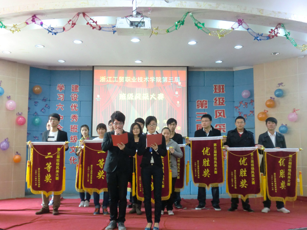 经过两天的激励角逐,“学习六中全会精神 建设优秀班级文化”——第三届班级风采大赛于12月4日在阶梯教室顺利落下帷幕。在两天的比赛中,共有来自我院9个分院系的20支队伍参加了今年的班级风采大比拼。最后,来自管理学院的人力资源管理1002班获得了本次比赛的一等奖,获得本次比赛二等奖的班级是人力资源1001班和汽修1001班,获得本次比赛三等奖的班级是汽销1001班、艺术设计0901班和信管1001班,获得本次比赛优胜奖的班级是会计1006班、机电一体化1003班、工业设计0902班和国贸1001班。