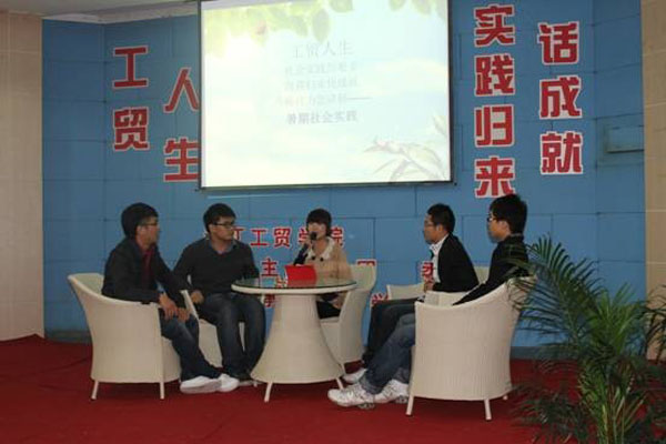 实践归来话成就,社会实践出真知,社会实践长才干,经历过社会实践的队员对于自己、对于人生、对于社会都有了不一样的认识。在工贸人生论坛上,经贸学院“爱可”支教实践队队长蔡秀慧、信息学院“六城联创,低碳节能”实践队队长钟杰、校学生会“寻红”实践队队长沈建、电子系“永昌堡宗氏祠堂”古文化研究实践队队长丛小川代表学院36支实践队分享了他们社会实践的点点滴滴。