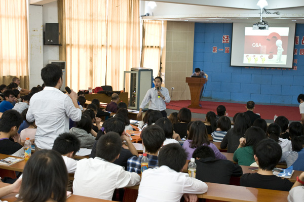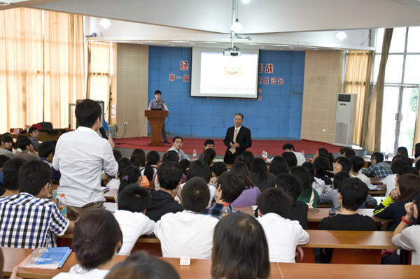 会上,福建两岸经贸有限公司总经理张佑钧、执行长江雪秋、项目经理罗奕洪和陈添乐分别就项目总体情况、大赛参赛流程、奖项设置等相关事宜作了详细介绍。同学们表现出了良好的兴趣,纷纷提出了自己关心的问题;两位经理一一回答了同学们的提问,还现场让同学们品尝了本次比赛的部分销售商品——台湾名小吃系列食品。之后,经贸学院院长汪焰作了总结发言,他希望广大同学能够着眼未来,放眼世界,紧跟经济社会发展的步伐,努力突破专业局限性,珍惜这次实践与锻炼的宝贵机会,充分参与到网络经济时代的两岸贸易与营销上来,全面提升自己的专业技能与职业能力,为今后工作奠定坚实基础。