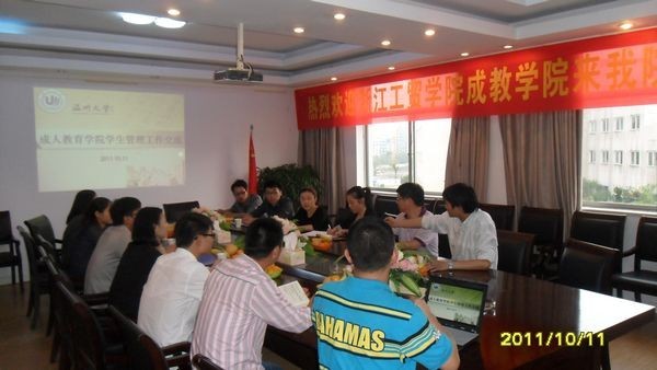 10月11日下午,浙江工贸学院成教学院周宗谷副院长、成教学院党支部书记、学生管理部主任徐登喜老师一行6人共赴温州大学成教学院参加两校学生管理工作交流会。双方学院老师就学生管理工作方面进行了深入交流探讨,相互学习借鉴,取得了良好的效果。