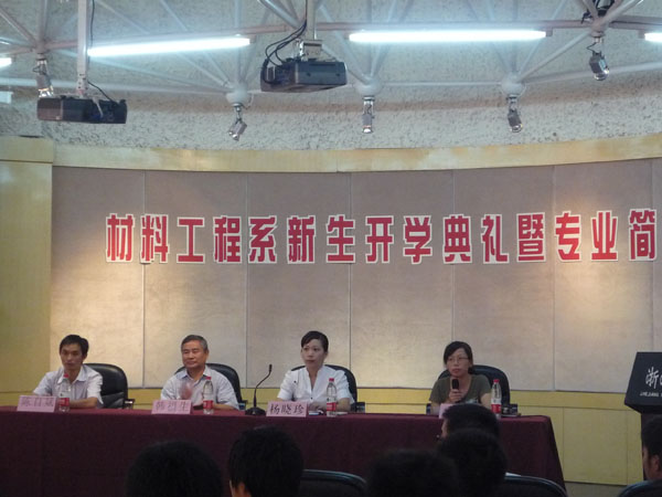 为了迎接材料工程系2011级新生的到来,引导新同学更好的适应大学生活,9月18日上午,在多功能厅隆重举行2011级新生开学典礼及专业入学教育。中国固体物理研究所博士生导师韩福生、温州瑞明工业股份有限公司人力资源部经理陈自斌和材料工程系全体教师以及2011级新生参加了开学典礼。