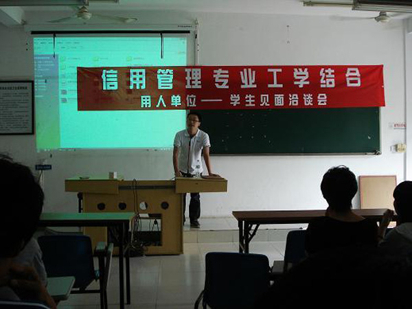 深圳广发证劵公司作为我院管理学院工学结合的合作单位,与我院保持着良好的合作关系。为实现了工学结合的双向选择,为用人单位和学生提供交流沟通的平台。管理学院于921日组织2010信用管理专业的学生举办了一场深圳广发证劵与学生的见面会,会议由管理学院院长潘毅主持。见面会邀请证券行业的资深人员蒋娜为同学们详细地介绍了金融行业的发展历程以及未来的发展趋势,同时也从证券行业所需要的知识结构、专业技能和个人综合素质等方面让同学们增强了对自己、证劵行业和社会的认识,帮助同学们更加合理地安排自己的职业生涯规划。