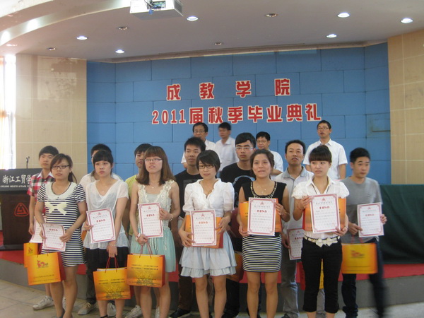 浙江工贸成教学院2011届秋季业全日制、业余专科毕业典礼于6月26日上午在工贸学院阶梯大教室举行。成教学院常务副院长刘鲁楣、副院长周宗谷、学生部主任徐登喜、教务部主任杨鹏、学生部全体老师以及400多名毕业生出席了本次典礼。