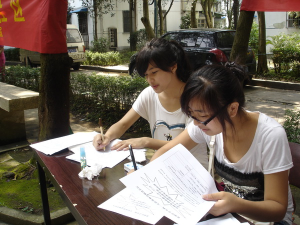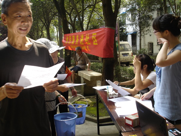 考虑到居民们与志愿者们语言的交流,考虑到维修的全面宣传,考虑到电脑维修的顺利进行,志愿者们按照不同的能力进行了有效的分配:温州当地的志愿者爲翻译,以便于与老年们更好的沟通;乐于交流的志愿者来发传单和交流,以便更好的宣传;维修电脑精通的志愿者进行维修,以达到更好的效果。