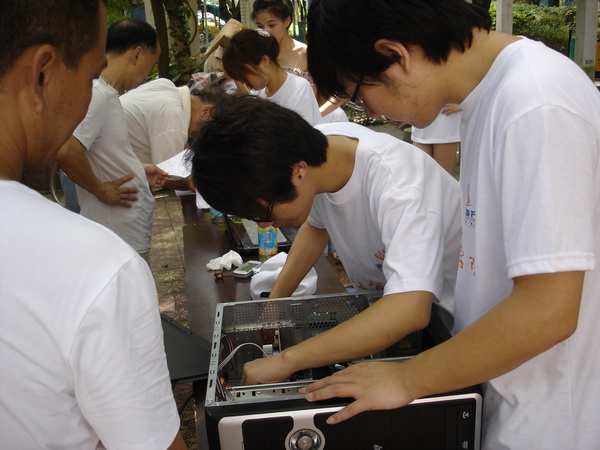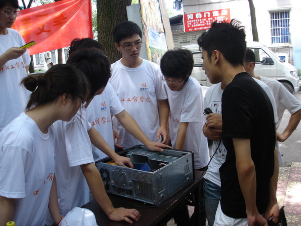 有需要维修电脑的居民们都欣然地将家里的电脑搬出来,请队员们修理。至于一些不方便搬动的电脑,志愿者便进行上门服务。志愿者热情的服务态度、精湛的维修技术,赢得了社区居民的很好的肯定与赞许;同时居民们的高兴与满意的言谈举止,给了志愿者们更大的工作积极性。