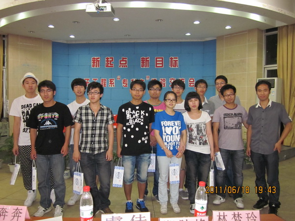 由于时间的关系,14名考上“专升本”的同学未能全部上台发言,但吴老师要求大家在“专升本”的QQ群中,要耐心的解答学弟学妹关于专升本方面的问题,为下一届同学的专升本创造好的条件。吴老师也对09级同学“专升本”提出了自己的殷切期望,希望他们在08级同学的基础上,来年再创佳绩。