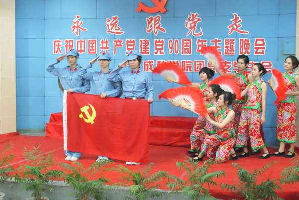 6月16日晚,成教学院举行“永远跟党走——庆祝中国共产党建党90周年主题晚会”。该院常务副院长刘鲁楣老师、副院长周宗谷老师以及全体中层干部和老师,成教学院及各系部近300名学生观看本次演出。