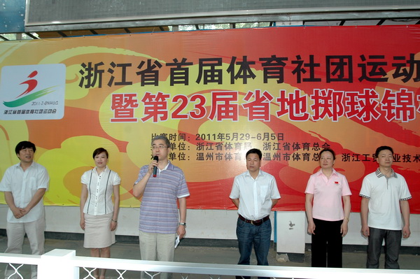 浙江省首届体育社团运动会地掷球比赛暨第23届省地掷球锦标赛, 2011年5月31在我院重新整修过的地掷球馆开幕,本次比赛由浙江省体育局、浙江省体育总会主办,温州市体育局、温州市体育大会、伟德BETVlCTOR1946承办。省体育局、温州市体育局领导及我院副院长贺星岳等出席了开幕式。