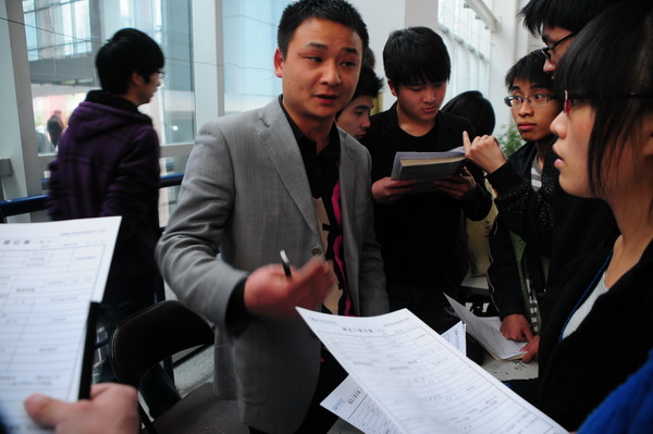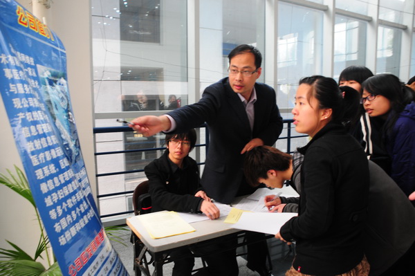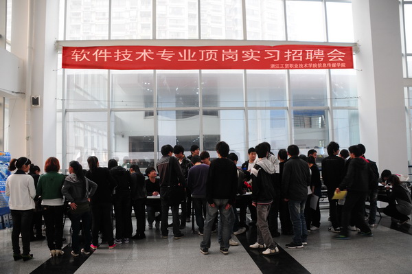 信息传媒学院现有2009级软件技术专业顶岗实习生47人。从4月11日起,软件教研室连续安排多场顶岗实习现场招聘会,协助学生落实了顶岗实习岗位。其中,4月13日在6号楼一楼大厅举办的软件技术专业顶岗实习招聘会,吸引了有温州市捷点科技有限公司、温州卓达科技有限公司、温州宜联科技有限公司、温州诚宇科技有限公司、温州蓝歌网络有限公司和温州卡易网络技术有限公司等6家企业,参与应聘学生有计算机软件、网络和图文专业。学生在了解各家企业岗位需求后,按照自己的意愿选择岗位,通过面试,该专业大部分学生已与企业达成实习协议。