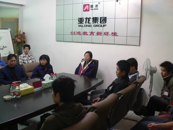 今天上午,我院电子系的领导、专业教师、辅导员一行四人,来到亚龙教学仪器设备有限公司,看望在本企业开展“工学结合”的同学们,并与他们座谈,深入了解他们在企业的学习、生活状况。