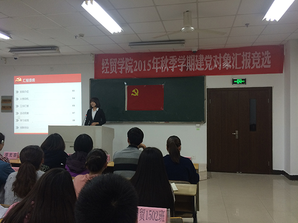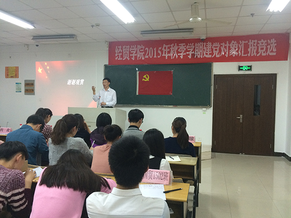 11月21日下午,经贸学院在6号教学楼6602教室举行2015年秋季学期建党对象汇报竞选暨2015年秋季学期入党积极分子培训会。
