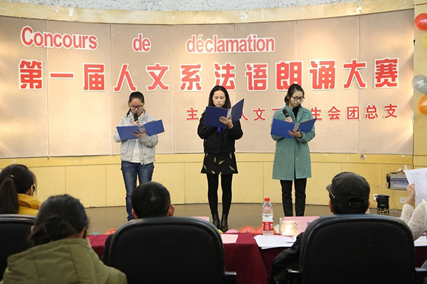 12月7日晚,人文系在学院多功能厅举办了首届法语朗诵大赛决赛。本次比赛人文系法语专业共有大一大二共16组参赛选手参加。通过预赛的角逐脱颖而出的他们各自发挥着自己的特色,用深情的法语朗诵诠释了对诗歌、文章情感的把握及对专业的理解喜爱,为观众带来了一场视觉听觉的盛宴。这也是人文系为加强法语专业建设和提升学生的专业兴趣而开展的一系列融专业与校园文化活动为一体的教育引导活动新尝试。此前,人文系已定期每年开展有法语技能大赛、法语歌曲演唱大赛、法语写作大赛等活动。