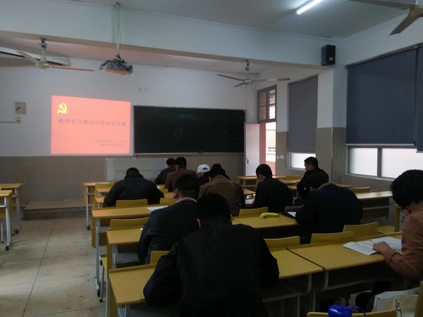 学习大会分为三个流程。首先,教师党员在1301教室自主学习和研读《廉洁自律准则》和《纪律处分条例》,学习和了解文件中的重要内容与精神。其次,冯老师讲解了《中国共产党廉洁自律准则》和《中国共产党纪律处分条例》文件出台的背景、时间和意义。在讲解中,书记重点提到了中国共产党廉洁自律准则,并对教师党员提出了要求,希望教师党员在平时工作中要坚持吃苦在前,享受在后,甘于奉献;要公私分明,清白做人,自觉维护学生和学校的根本利益,提升个人的思想道德修养,带头树立良好形象。最后,教工党支部举行了一场廉洁自律知识竞赛答题。通过知识竞赛,让教职工党员了解和铭记文件中的重要内容和精神,提升教职工党员的道德情操和理论修养。