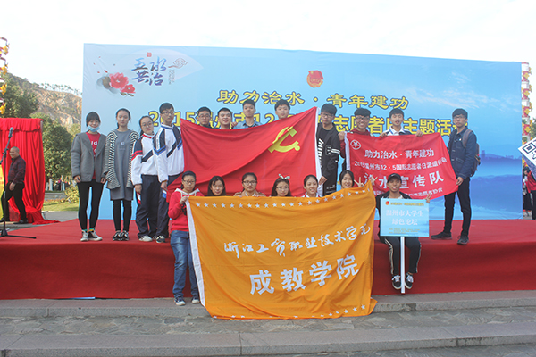 12月3日下午,“助力治水·青年建功”2015温州12·5国际志愿者日主题活动在温州杨府山公园举行,来自学院成教分院等15支团队代表的500多名志愿者参加活动。