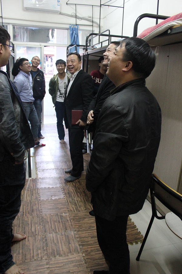 在走访的过程中,老师们亲切地和学生打招呼,了解学生所在专业的就业状况、询问学生们对学院的感受、学习情况和生活近况,征求同学们对学院教育、管理和服务工作的意见建议。同学们表示,对目前的学习生活状况基本比较满意。临走前,盖书记再次嘱咐同学们注意寝室卫生,维持良好的寝室关系,营造整洁和谐的生活环境。