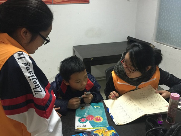 仰义街道的村里有一群留守儿童,志愿者们四点半来到校门口接孩子们放学。志愿者服务队辅导孩子们做功课、耐心地询问他们的兴趣爱好、还教孩子们画一些简单可爱的漫画,志愿者们给留守儿童送去了陪伴、知识与欢乐。直到天黑,这些孩子们才依依不舍与志愿者们告别,并希望还能再见到大哥哥大姐姐们。