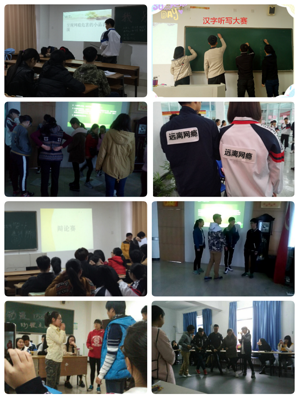 本次心理主题班会比赛覆盖2015级全体学生,心理委员和班干部成为活动的策划者、组织者和领导者,同时也有部分班级有班主任的参与,心理委员把在心理委员培训中学习到的心理知识运用到了活动中。本次主题班会涉及面广,内容丰富,形式多样,以网瘾为主题的自导自演微电影,暖身心理游戏,心理小品,心理测试,辩论赛等各种形式的活动纷纷上阵,为心理主题班会增添了不少亮彩。有些班级通过室内讲述和室外活动相结合,鼓励同学们离开手机,离开电脑,离开网络,热爱生活,拥抱青春。
