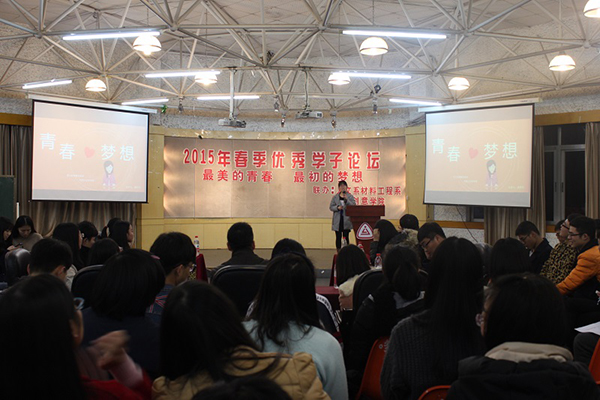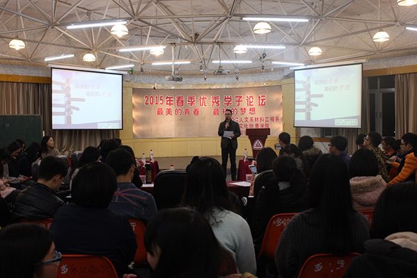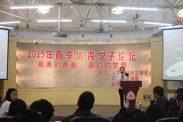 12月27日晚,由人文系,材料工程系,知识产权学院,文创学院共同举办的“最美的青春,最初的梦想”2015春季优秀学子论坛在多功能厅举行,四个分院系的书记、辅导员以及来自四大院系的学生参加此次论坛活动。