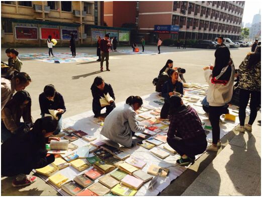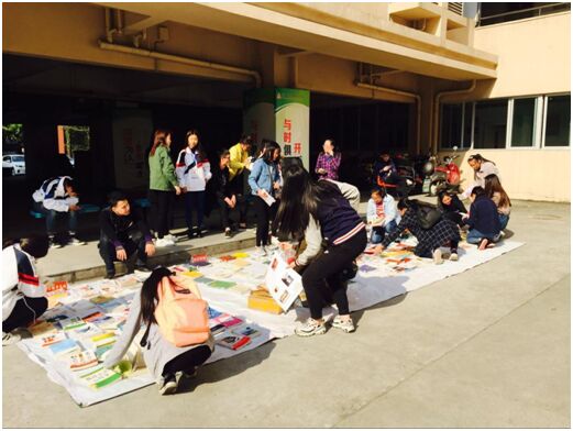 活动前夕,为了让同学们更好地了解“晒书”活动的意义,院宿管会的干事们在各幢张贴宣传海报、下寝室宣传等,并且向图书馆借了三百余册书籍用于现场活动使用。
