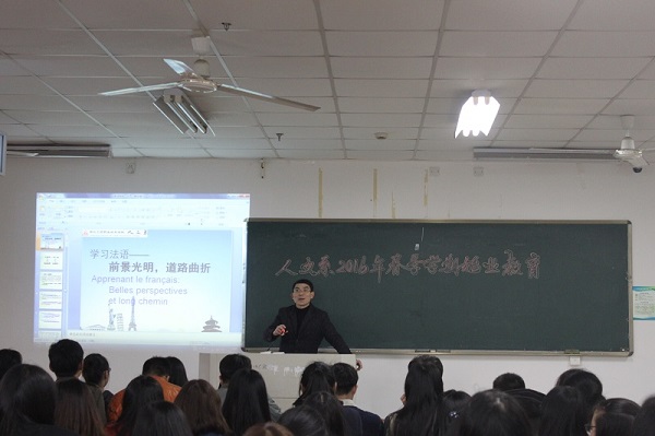 2月28日,人文系2016春季学期始业教育在6304教室举行,人文系党总支副书记徐辉,法语专业主任朱浩然出席会议,人文系全体学生参加了会议,会议由徐辉副书记主持。