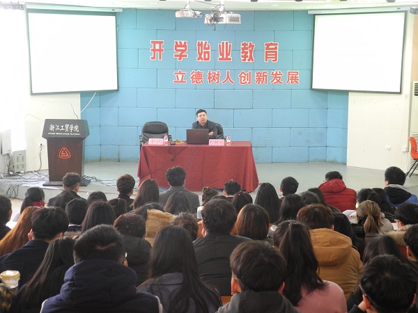 2016年2月27日,我院在阶梯教室举行了开学始业教育,浙江工贸技师学院副院长程树存老师、各班班主任及全体同学参加了开学始业教育。