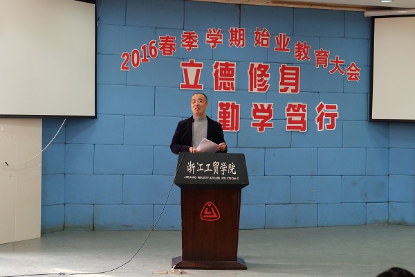 2月28日下午,轻工系2016年春季学期以“立德修身、勤学笃行”为主题的始业教育大会在阶梯教室召开,轻工系副书记杨松涛(主持工作)、主任卢行芳和辅导员及全体学生参加大会,余正锋老师主持会议。