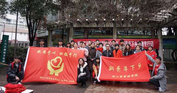 2016年1月17日上午,管理学院协同学院团委在广化街道集善社区篮球场举行新青年下乡暖冬行动,广化街道是管理学院新青年下乡对接单位。参加服务的队伍有学院团委组织的瓯绣、瓯塑、地掷球团队、摄影协会、舞蹈协会以及管理学院派出的金融服务志愿队的同学们;给居民提供的服务有瓯绣、瓯塑作品展示与体验,新版人民币辨别、赠送挂历台历春联、集体舞教学、全家福摄影等服务项目。