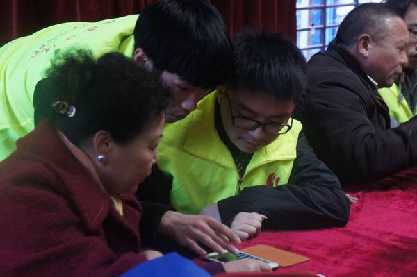 1月14日下午,学院二十几名大学生早早地来到了青园社区里,让他们万万没想到的是道德讲堂里已经聚集了很多的老年人,原来老人们听说下午有大学生教授老人学微信活动,便早早来抢占“有利地形”了。活动在没有任何启动仪式的情况下就这样开展了起来,大学生们采用一对一的方式,由于人手不够还临时从学校急调同学来增援。有的老人以前都用的是老年机,为能跟上时代的脚步,特意购买了智能手机。志愿者们根据老人的接受程度,针对不同老人分别教会他们软件下载、登录无线网络、联系人增加、语音通话、视频通话、关注公众号、文字输入、微信红包等,为防止老人因适应微信被骗,志愿者对个别老人保留了与“钱”有关的项目。等部分老人学会“抢红包”后,志愿者们给老人们发“微信红包”,一个个小红包掀起一波波的笑声和叹息声,一个个的小红包也积累起来老人学习新知识的热情。有老人高兴地说:“今年过年,我也用微信发红包,也用手机抢红包,不只在旁边看热闹了”。同学们突然觉得,原来自己小小的付出不仅帮助老人们学会了使用微信,这背后还弥补了互联网+时代老人被抛弃的亲情。