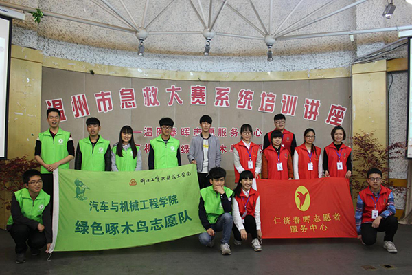 为了增强学生们的安全意识,使学生们掌握初级急救技能,2016年4月10日下午在学院多功能厅,汽机学院绿色啄木鸟志愿队邀请温州医科大学仁济学院春晖志愿服务队的志愿者们为同学们普及内容实用的急救知识和技能。