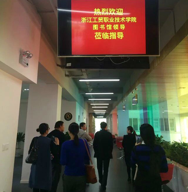 2016年4月11日,我院图书馆一行6人在钱守义馆长的带领下,来到温州职业技术学院图书馆。在温职院图书馆唐高平馆长、诸葛理县主任的陪同下参观了图书馆的改造情况。不同功能借阅区、共享研讨室,密集书库等,新改造的温职院图书馆的独特设计,精致装修,温馨布设。阅读区域一改传统图书馆的布局,融入现代图书馆与城市书吧元素,让人耳目一新。在读者研读室里,唐高平馆长为我院一行人详细介绍了图书馆各方面情况,同时,双方就图书馆文献资源建设、管理服务、活动开展、学术研究等相关问题进行了交流。