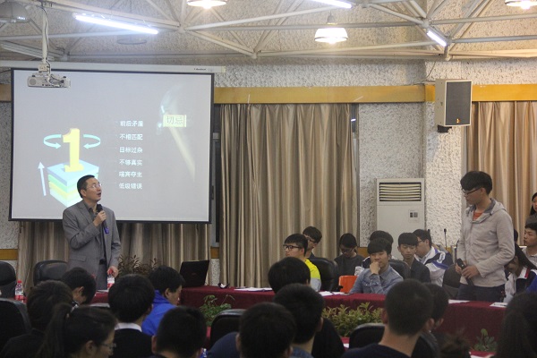 在活动过程中,团委负责人应马忠介绍了第八届浙江省大学生职业生涯规划大赛通知以及校内选拔赛安排。应老师鼓励同学们认真准备,积极参加,同时带动身边更多同学参加职业生涯规划大赛等创新创业竞赛,通过比赛进一步增强自身的职业规划意识和创新创业意识,从而树立正确的就业观、创业观和发展观。随后陈坤党老师以丰富的竞赛指导经历,结合职业生涯规划比赛要求,通过制度解读、文本分析、案例讲解等形式给学生带来了一场别开生面的赛前辅导培训。陈老师指出一件优秀的比赛作品需要一条主线,体现“四个感”即真实感、设计感、故事感和逻辑感。活动最后,陈老师就大学生创业项目选择与宣传、就业与创业等问题与学生进行了交流互动,帮助学生解答疑惑。