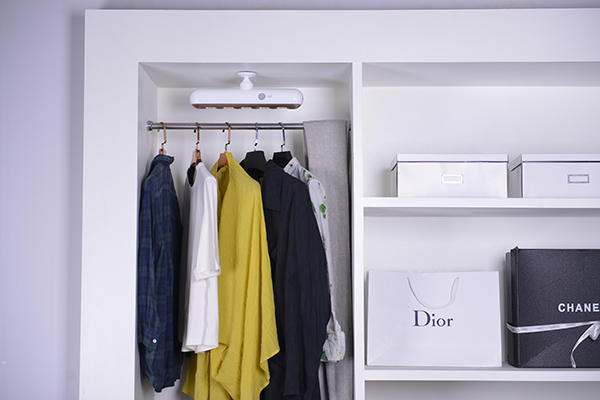 衣柜杀菌灯利用的是紫外线杀菌原理。紫外线指的是电磁波谱中波长从 10nm~400nm 辐射的总称。衣柜杀菌灯可以通过紫外线在 1s 内通过破坏微生物的 DNA 结构,杀死病毒和细菌。但是紫外线吸收过多对于人体的伤害也是巨大的,因此这款灯采用了智能感应系统,能够检测到人的范围,避免紫外线造成伤害。
