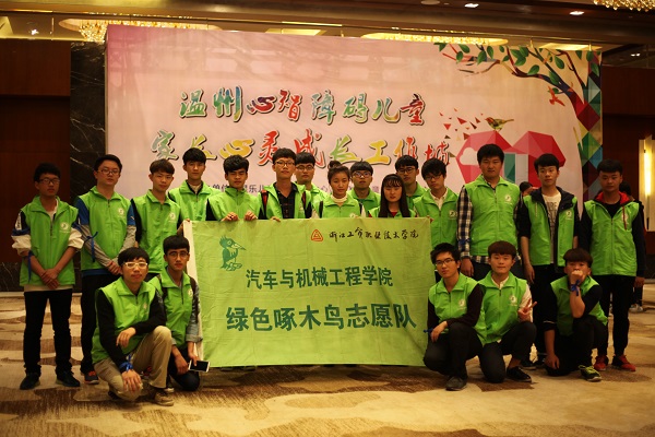 近日,汽机学院绿色啄木鸟志愿队来到温州喜来登酒店,协助星乐成长中心照看自闭症儿童。