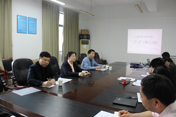 为坚持完善民主生活会制度,深入学习和领悟“三严三实”重要讲话精神,进一步加强技师学院党支部组织生活,根据学院党委的总体部署,2016年4月20日下午,技师学院党支部三严三实”专题民主生活会在技师学院杭州校区会议室召开。学院党委委员、党务工作部主任黄专途到会指导,技师学院党支部委员、干部参加了会议,会议由技师学院支部书记、院长王春柳主持。