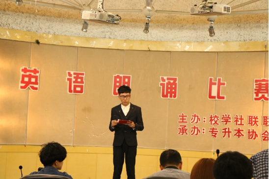 为进一步营造学院英语学习氛围,丰富校园文化、推动学院学风建设,给广大学生提供展现英语风采的舞台。4月22号晚上,由校学社联主办,专升本协会承办的英语朗诵比赛在多功能厅举行。本次比赛邀请了徐国胜、马忠才、何月姝、朱雪桢等专业教师作为现场评委,对各位参赛选手进行指导点评。比赛的同学们精神饱满,观看的同学们认真聆听,现场虽然比赛激烈但学习氛围更浓。