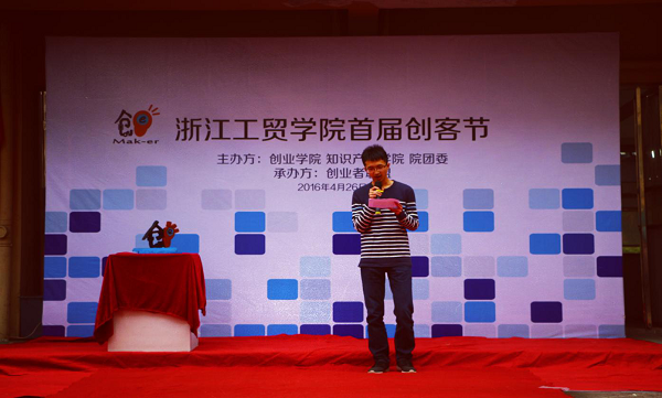 为了弘扬创客文化,激发广大学生的创新创造意识,营造“大众创业,万众创新”的校园文化氛围。2016年4月26日,由创业学院、知识产权学院、院团委联合主办,创业者联盟承办的浙江工贸学院首届创客节在学子广场隆重开幕。学院院长、党委副书记贺星岳莅临活动现场指导。