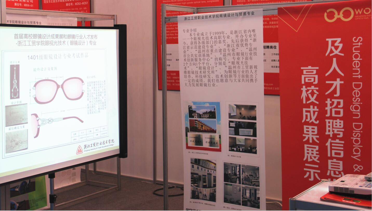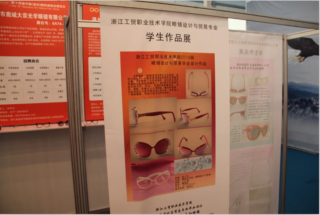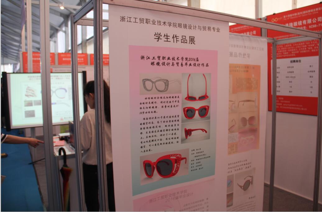 2016年5月8日,由温州市人民政府、中国浙江省眼镜行业协会主办,温州市眼镜商会、浙江德纳展览有限公司承办,为期三天的第十四届中国(温州)国际眼镜业展览会,在温州国际会展中心举行,我院轻工系主任卢行芳教授作为出席嘉宾参与了开幕典礼仪式。在此次展会中,由我院轻工系潘俊杰老师负责牵头联络,与眼镜行业协会、德纳会展公司共同举办的首届“高校眼镜设计成果展及眼镜行业人才发布”活动,展出了我院眼视光专业眼镜设计的作品成果以及毕业生人才信息,引起到场参观者和相关企业的浓厚兴趣。